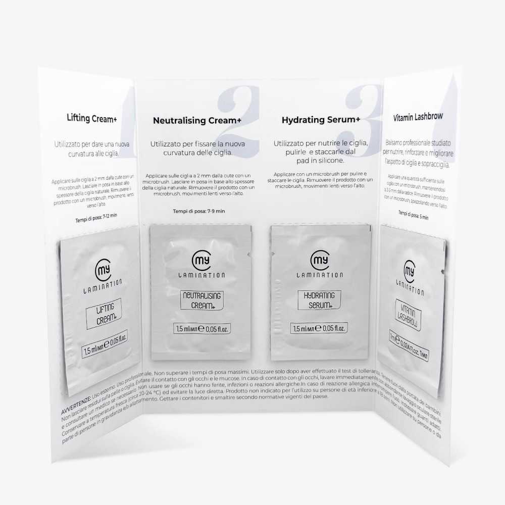 Eyelash Sample Set 00122 €12.59 Trial set containing the three phases in sachet format for eyelash lamination.Phase 1: Lifting Cream +Phase 2: Neutralizing Cream +Phase 3: Hydrating Serum +Contents: 1 set with 3 samples (1 Lifting Cream +, 1 Neutralizing Cream +, 1 Hydrating Serum +) Add to basket