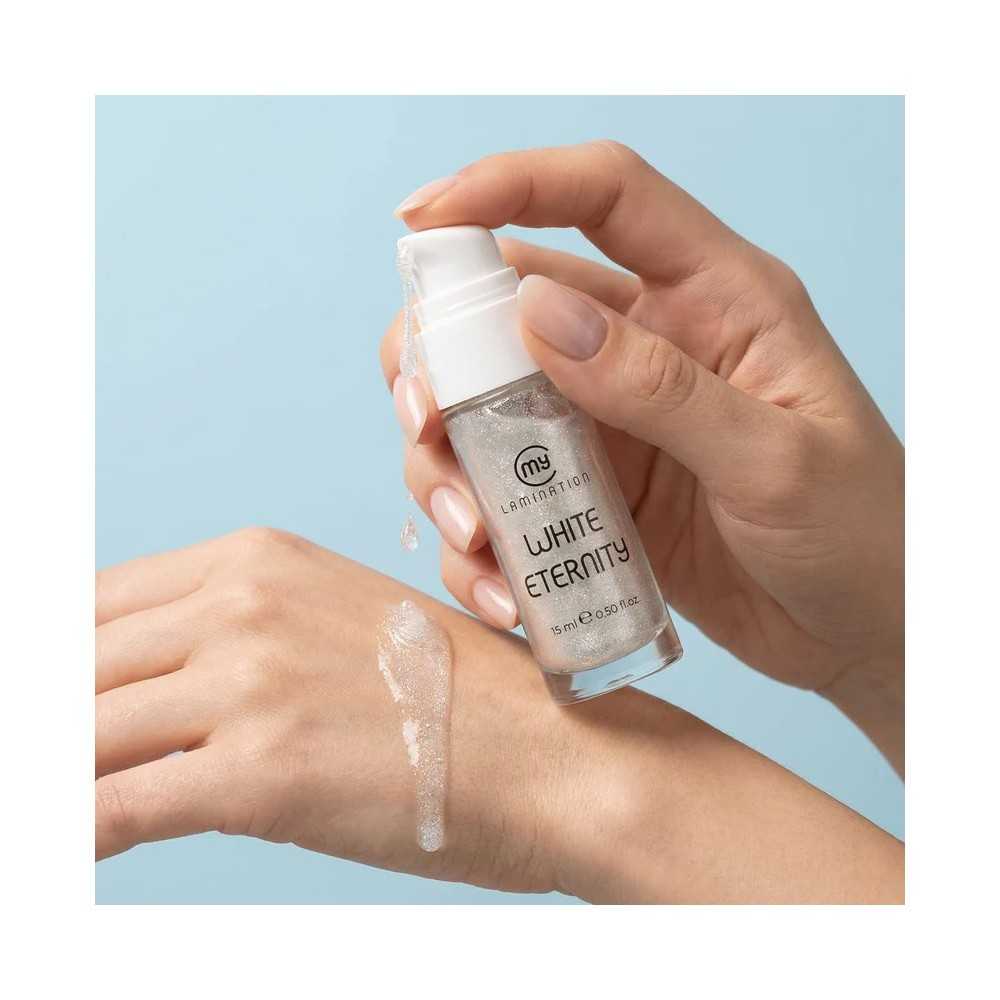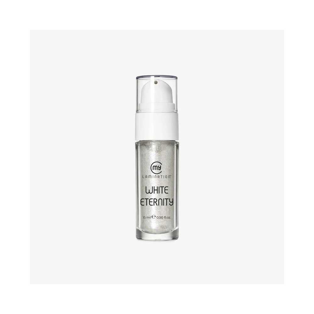 White Eternity also stands out for the presence of luminous mineral micro-particles that visually enhance the in-salon application. The shimmer particles are of mineral origin, not plastic, in line with My Lamination’s commitment to quality and sustainability.